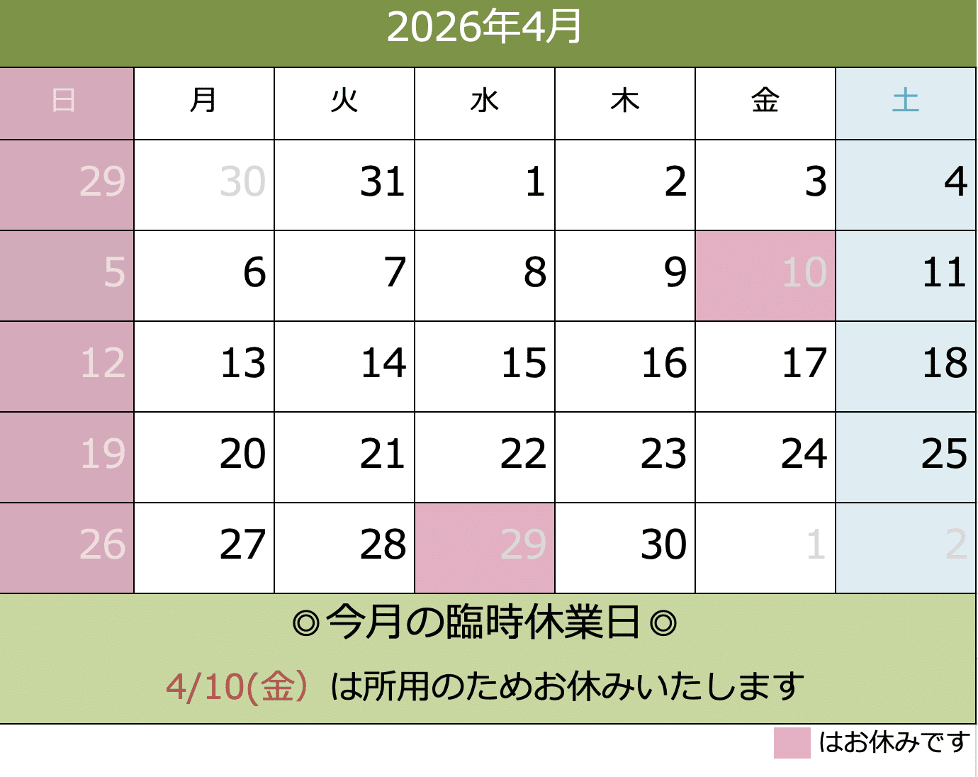 月曜〜土曜日11:00〜21:00(土は19:30まで)定休日:日・祝※予約制