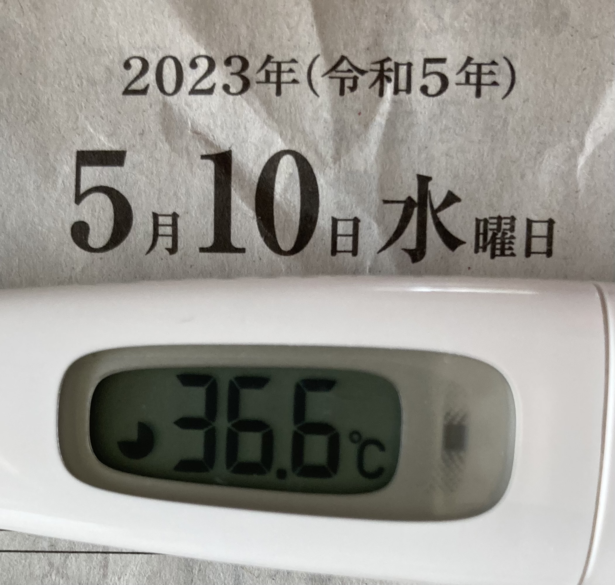 2023年5月10日(水)【体温】 36.6℃(平熱36.5℃)【症状】頭痛、咳、喉の痛み、味覚障害、その他自覚症状なし【体調】本日はほぼ平熱です。体調も良好です。