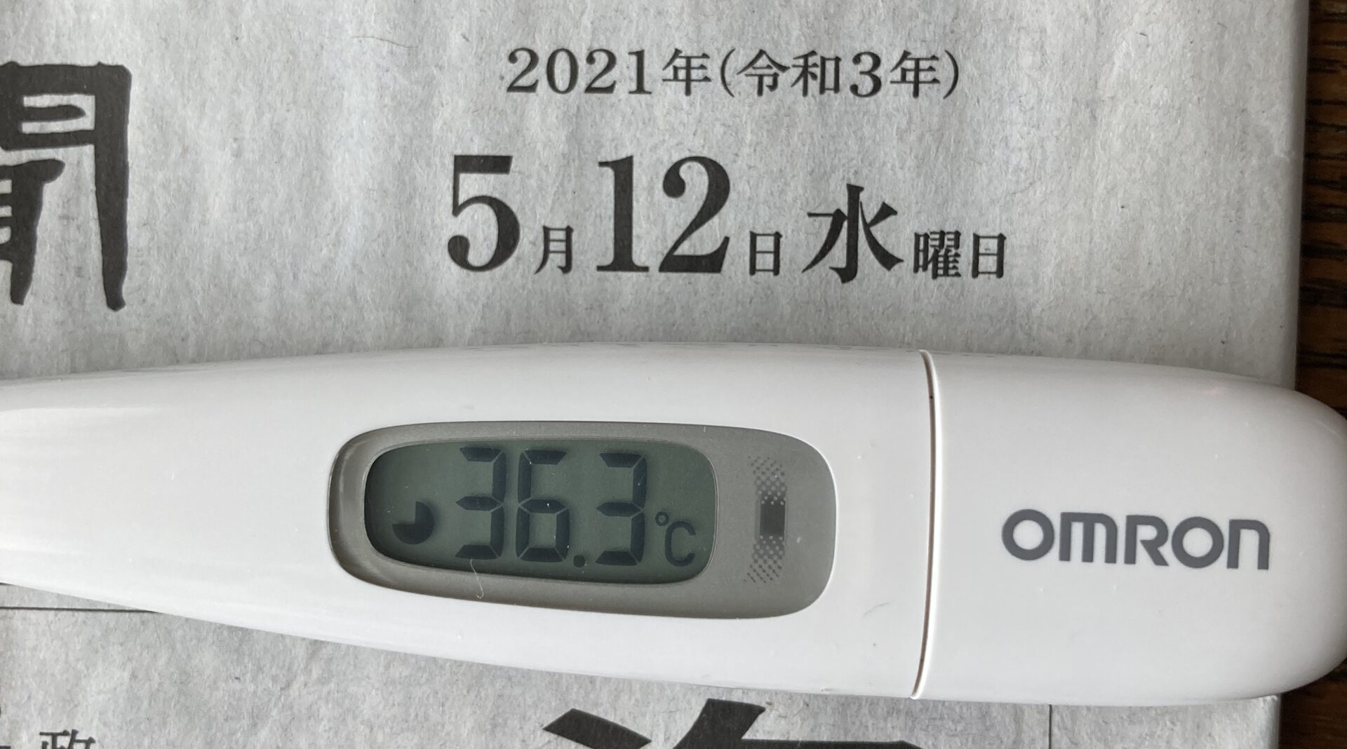 2021年5月12日(水)【体温】 36.3℃(平熱36.5℃)【症状】頭痛、咳、喉の痛み、味覚障害なし【体調】本日は平熱よりやや低めですが、体調は良好です。