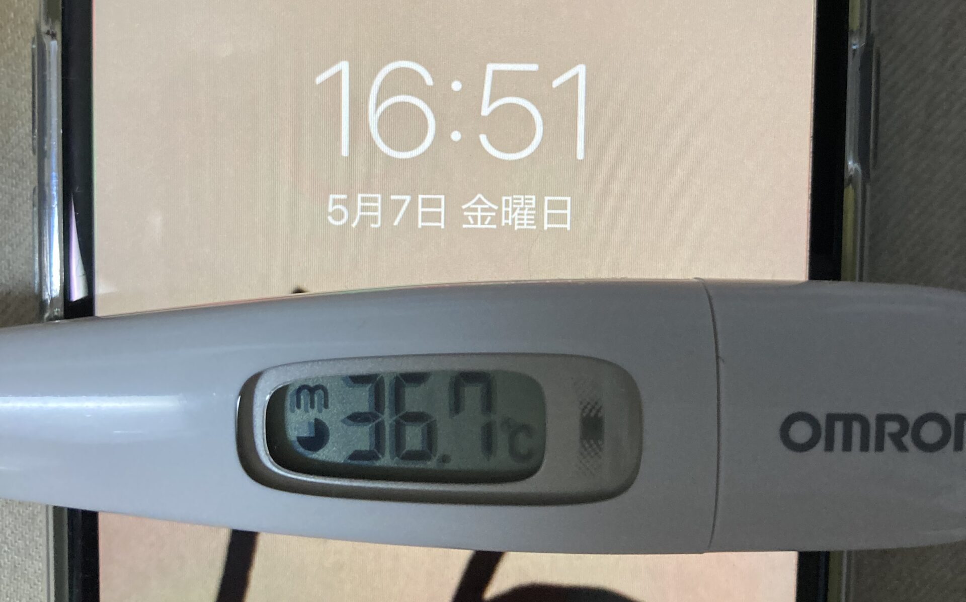 2021年5月7日(金)【体温】 36.7℃(平熱36.5℃)【症状】頭痛、咳、喉の痛み、味覚障害なし【体調】本日は平熱よりやや高めですが、体調は良好です。