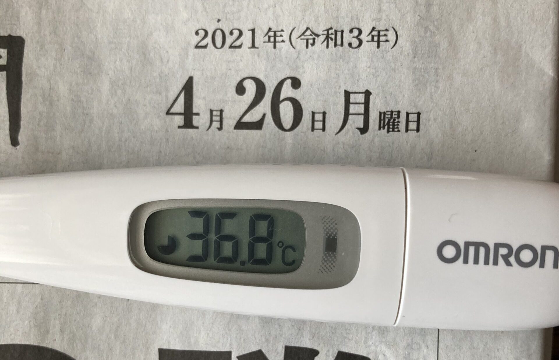 2021年4月26日(月)【体温】 36.8℃(平熱36.5℃)【症状】頭痛、咳、喉の痛み、味覚障害なし【体調】本日は平熱より高めですが、体調は良好です。