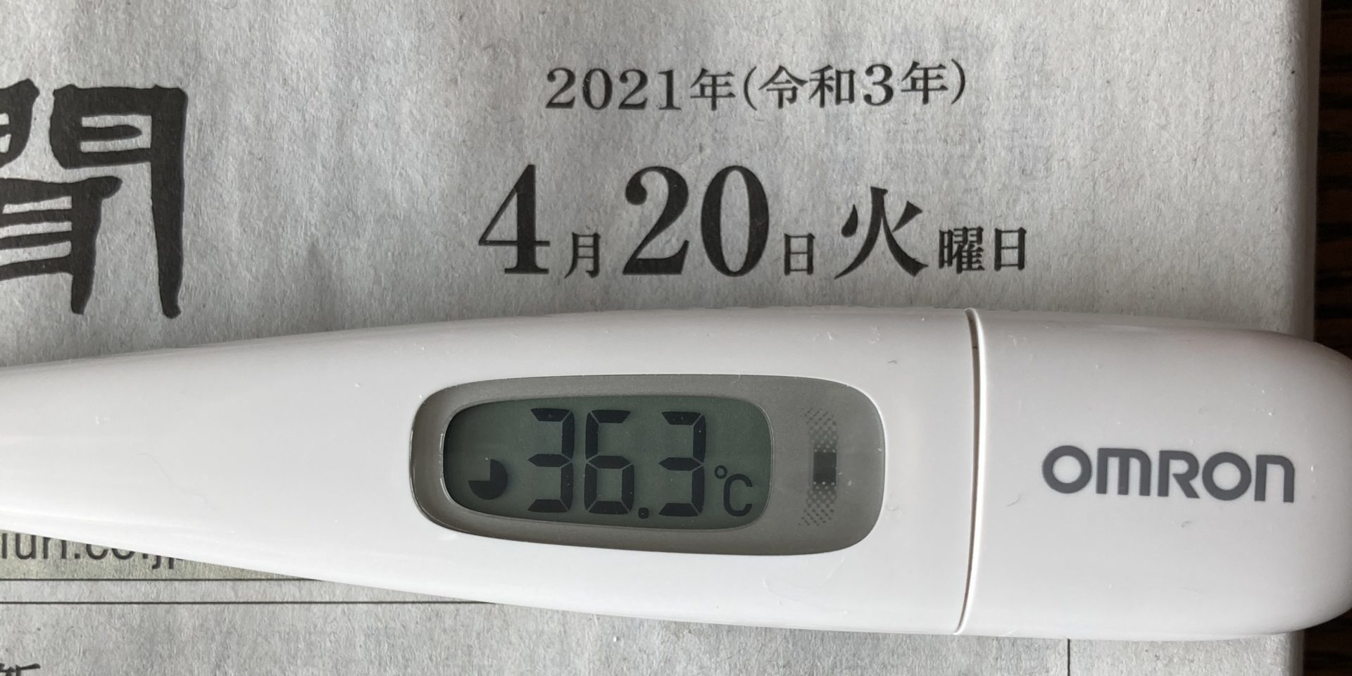 2021年4月20日(火)【体温】 36.3℃(平熱36.5℃)【症状】頭痛、咳、喉の痛み、味覚障害なし【体調】本日は平熱よりやや低めですが、体調は良好です。