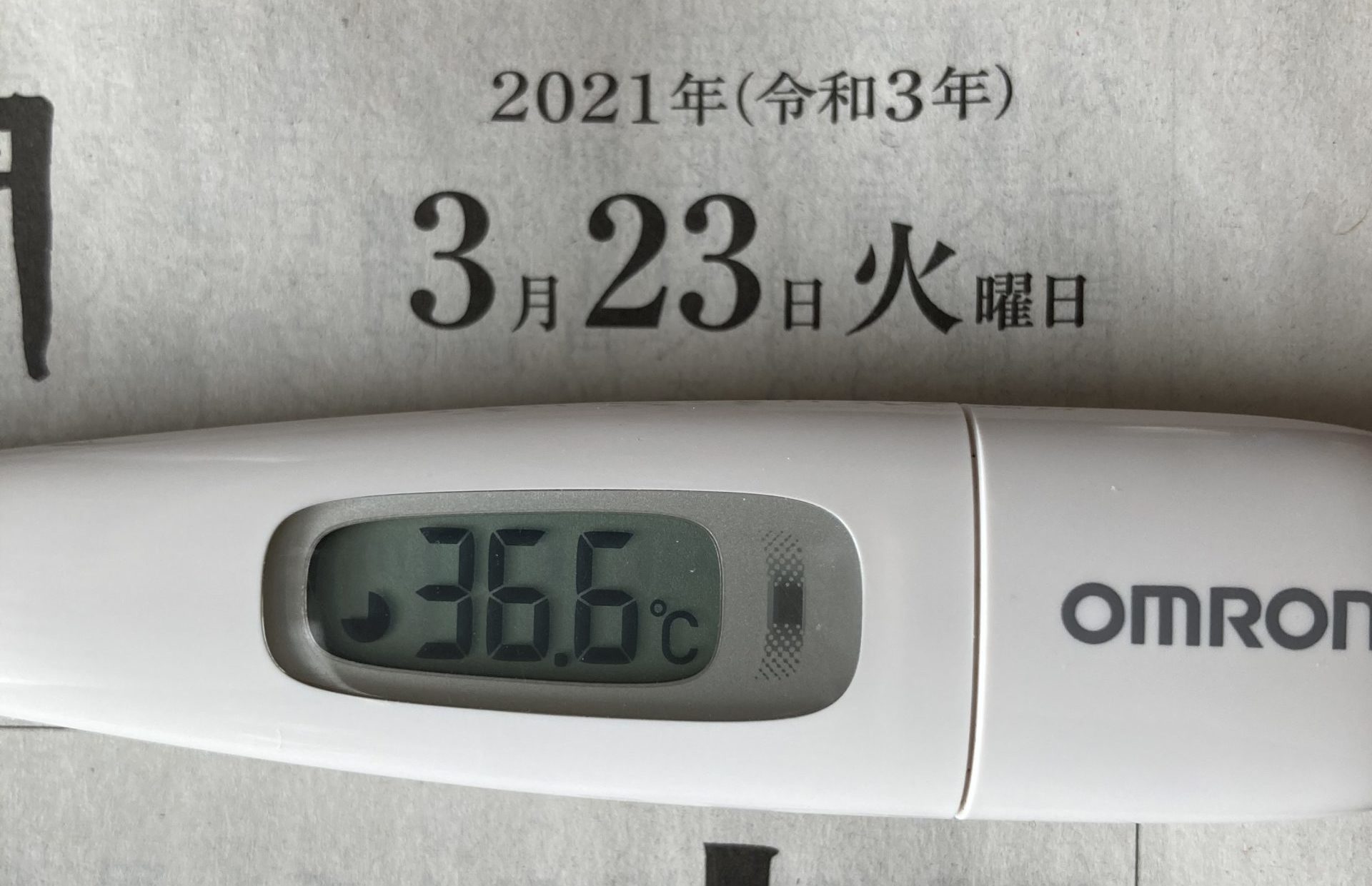 2021年3月23日(火)【体温】 36.6℃(平熱36.5℃)【症状】咳、喉の痛み、味覚障害なし若干の頭痛あり【体調】本日は平熱よりやや高めで、軽い頭痛はありますが、体調は良好です。