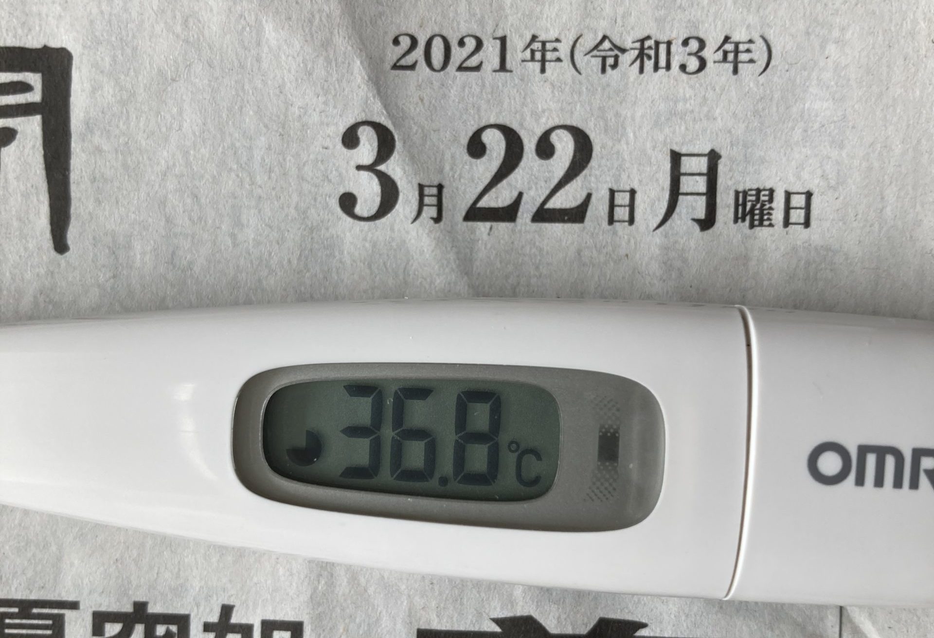 2021年3月22日(月)【体温】 36.8℃(平熱36.5℃)【症状】頭痛、咳、喉の痛み、味覚障害なし【体調】本日は平熱より高めですが、体調は良好です。