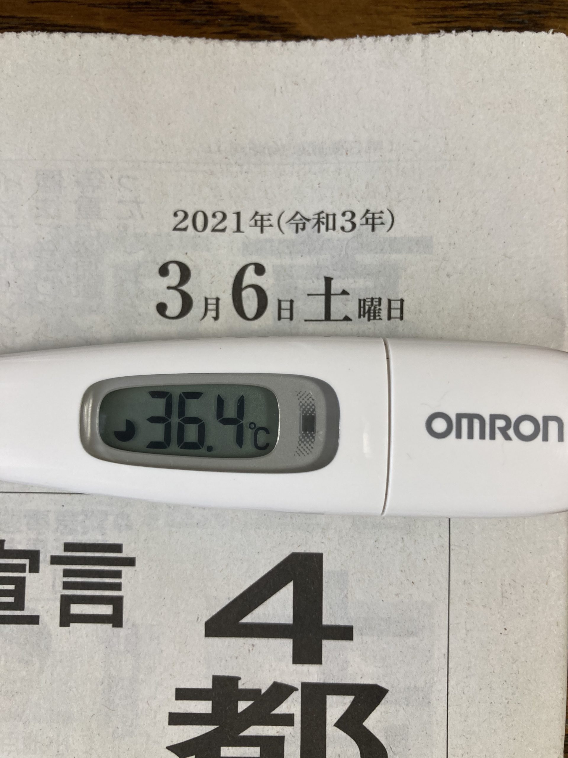 2021年3月6日(土)【体温】 36.4℃(平熱36.5℃)【症状】頭痛、咳、喉の痛み、味覚障害なし【体調】本日はほぼ平熱。体調も良好です。