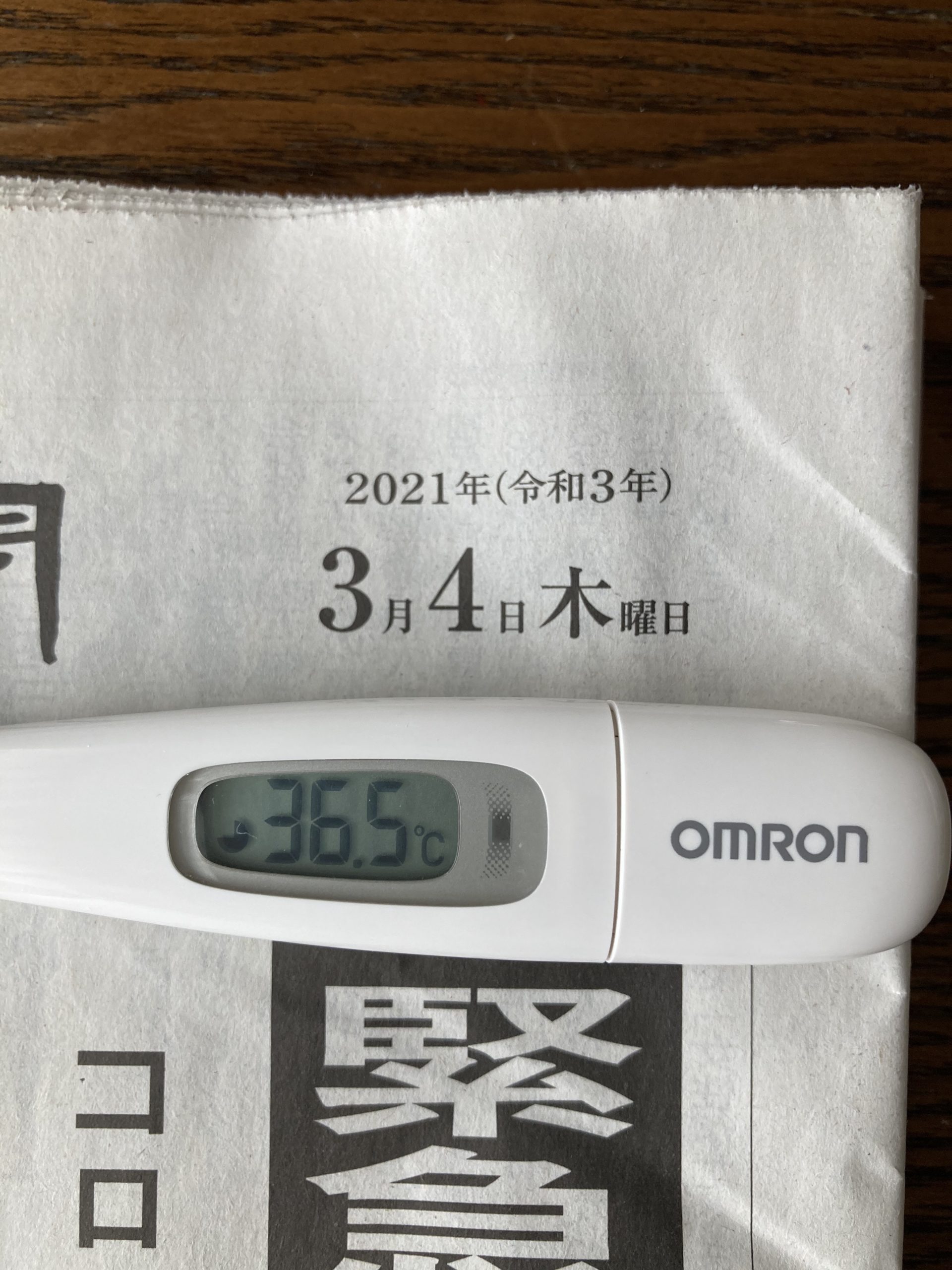2021年3月4日(木)【体温】 36.5℃(平熱36.5℃)【症状】頭痛、咳、喉の痛み、味覚障害なし【体調】本日は平熱。体調も良好です。