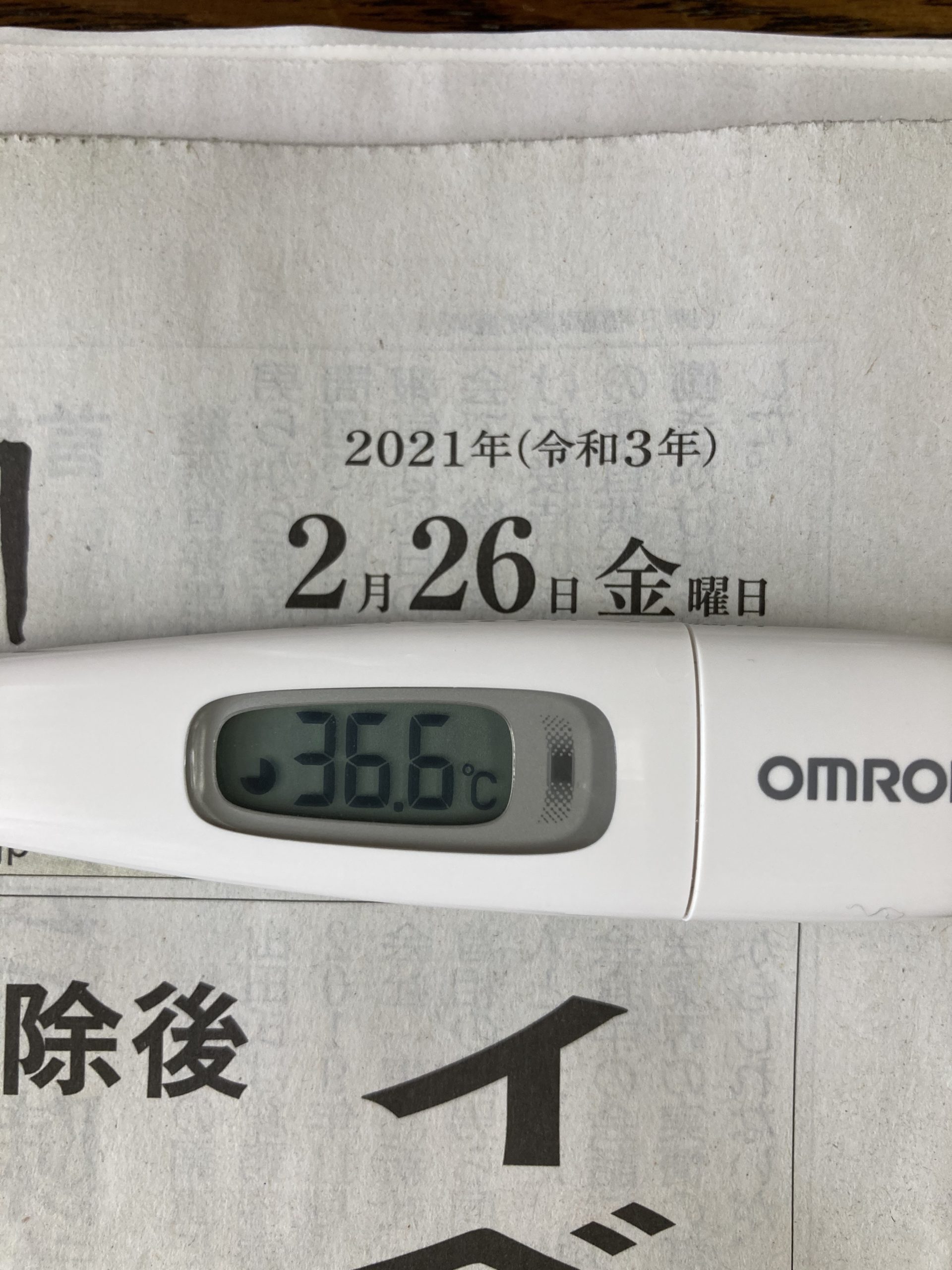 2021年2月26日(金)【体温】 36.6℃(平熱36.5℃)【症状】頭痛、咳、喉の痛み、味覚障害なし【体調】ほぼ平熱。本日も体調良好です。