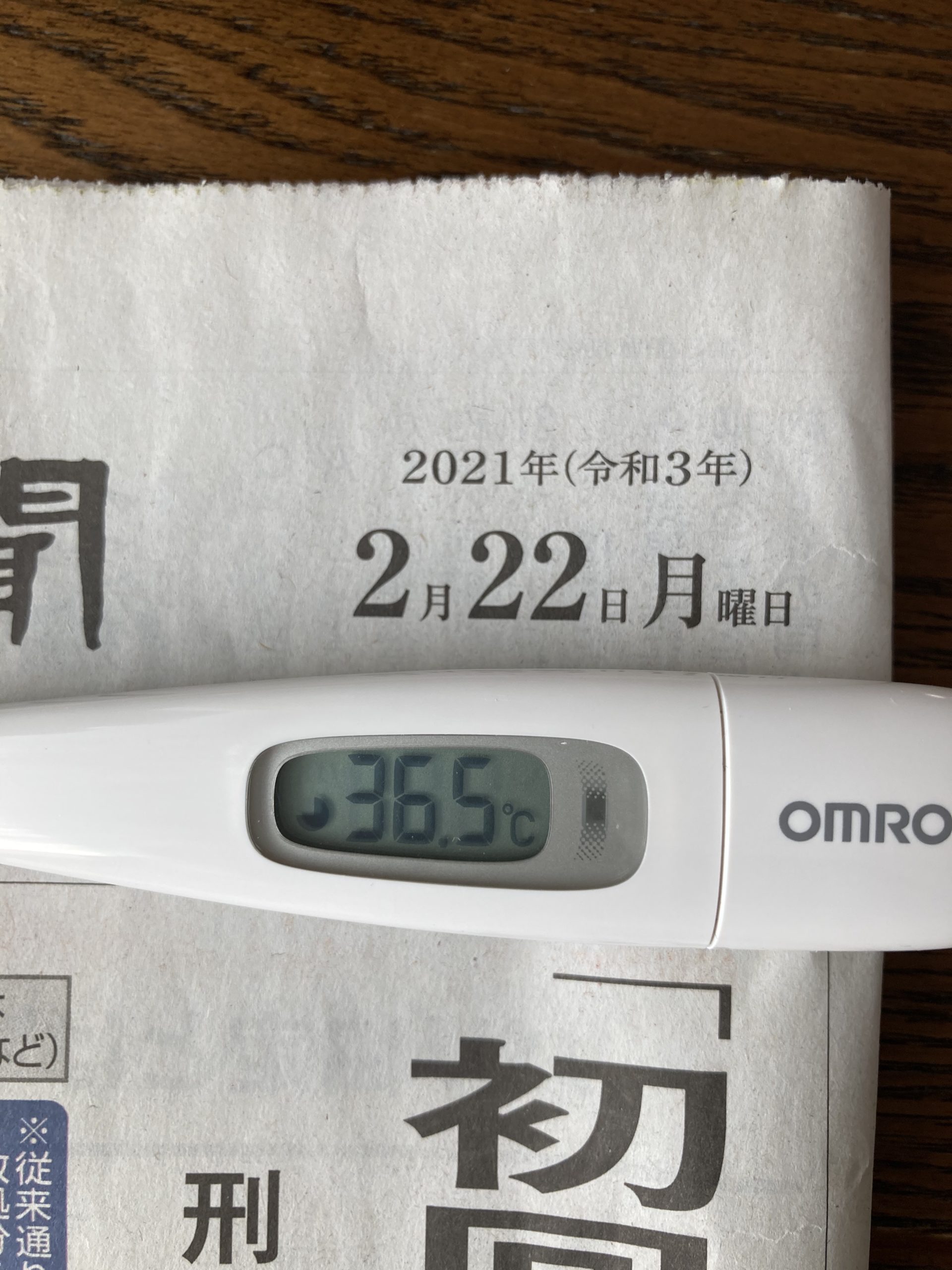 2021年2月22日(月)【体温】 36.5℃(平熱36.5℃)【症状】頭痛、咳、喉の痛み、味覚障害なし【体調】本日も体調良好です。